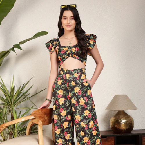 Modsik Women's Floral Crop Top and Palazzo Pant Co-ord Set